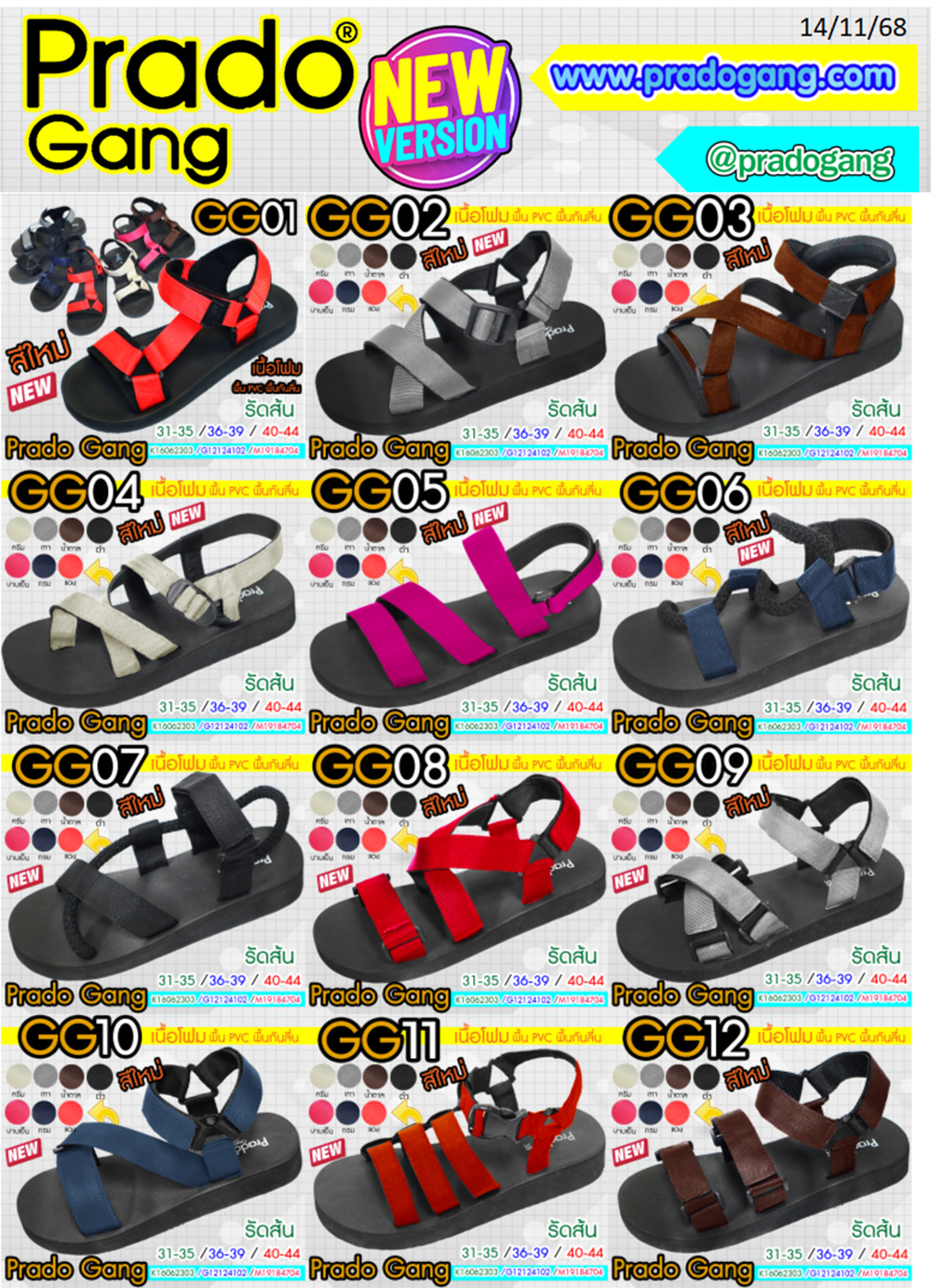 รุ่น : GG01- GG12 ยี่ห้อ : Prado Gang ขนาด : 31-35/ 36-39 / 40-44 สี : คละสี หมายเหตุ : โฟมหนา คีบ ผู้ใหญ่ *งานดี มีคุณภาพ *สามารถส่งของ ได้ทุกจังหวัด *ใส่กระสอบ ข้ามแดน ราคาพิเศษ
